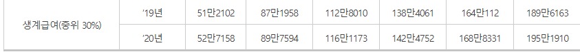 2020년도 기준 중위소득은 4인 가구 기준으로 올해 461만3536원 대비 2.94% 인상된 474만9174원으로 결정되었다.